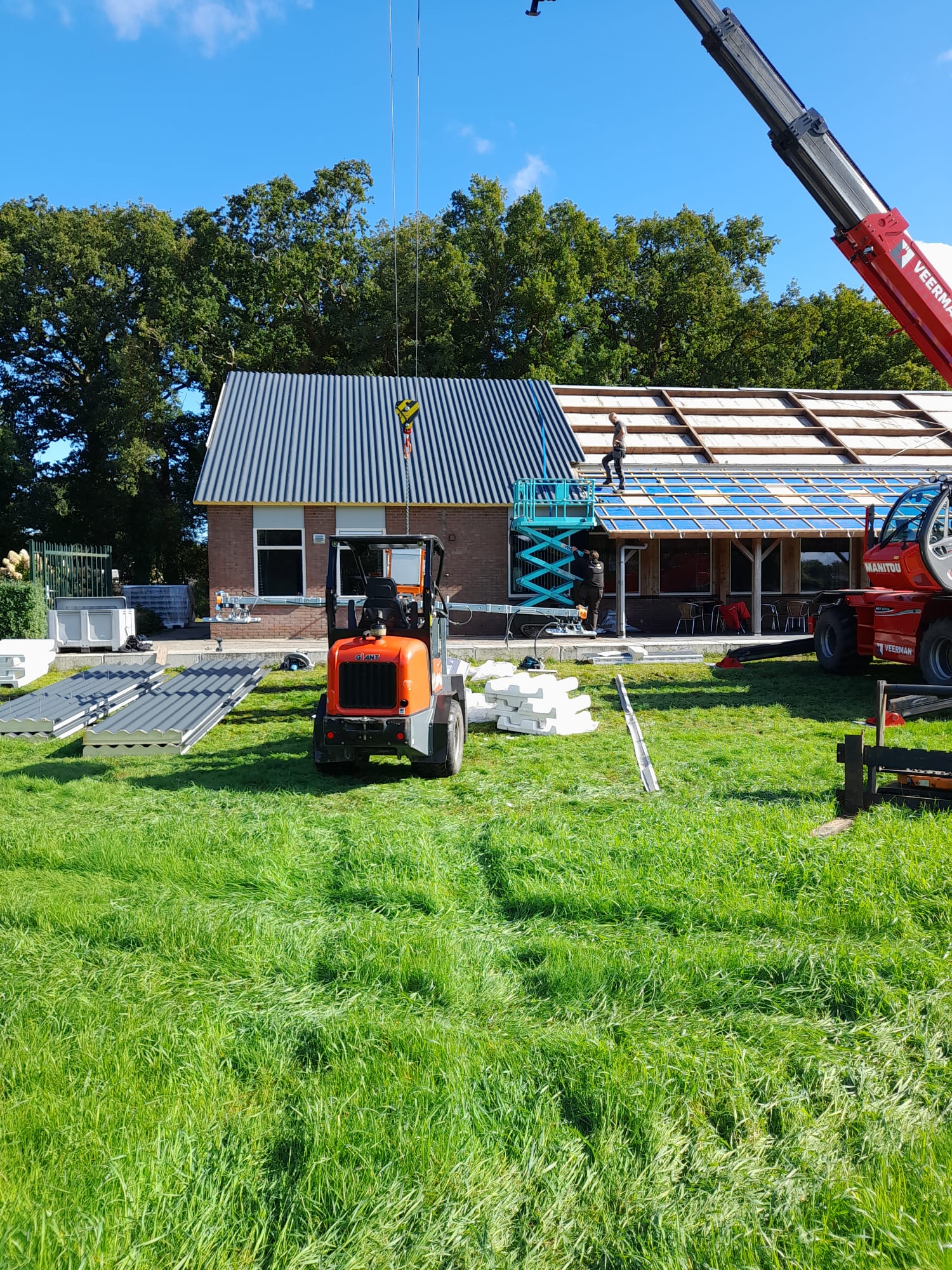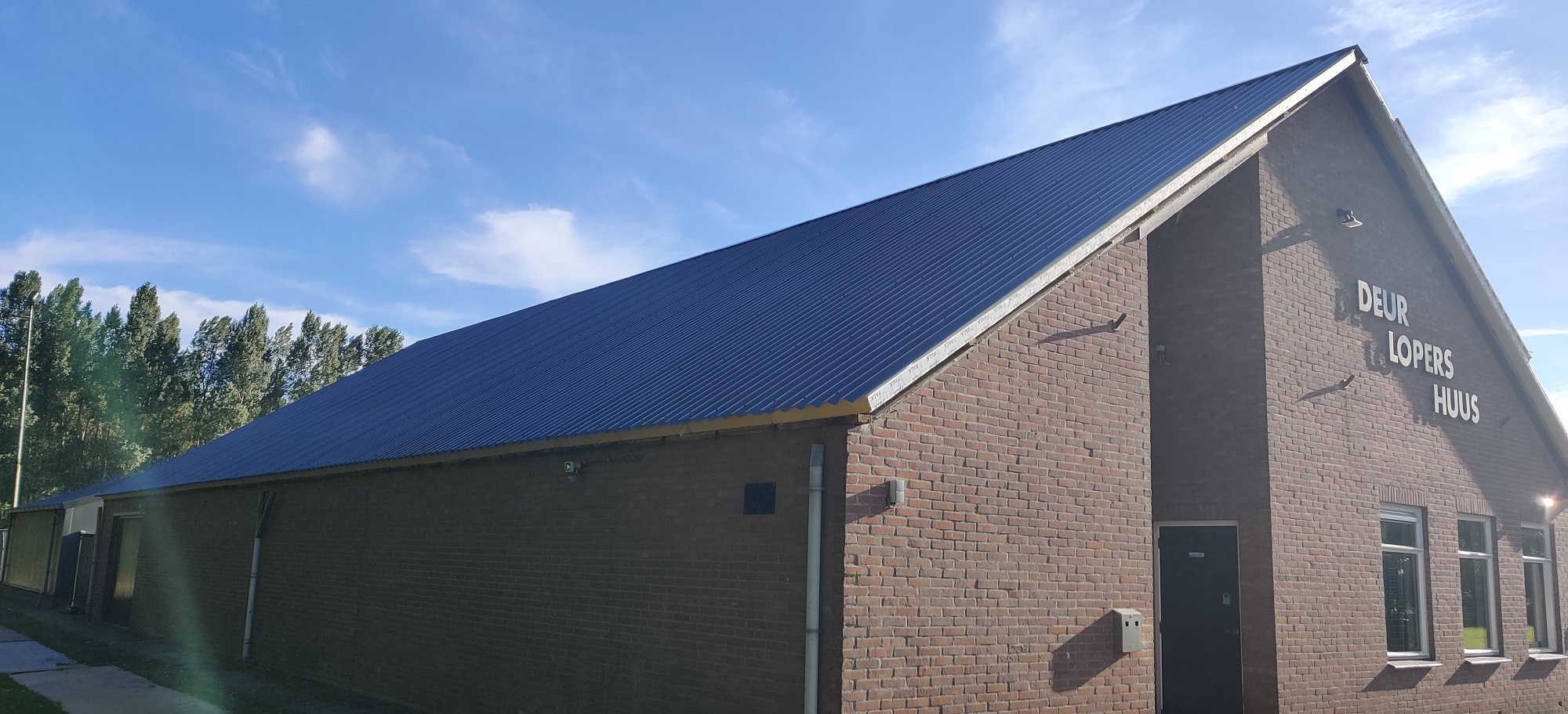 Eindelijk is het zover, het dak van ons clubgebouw Deurlopershuus is na een trouwe dienst van 40 jaar vervangen. Tijdens de bouw in 1985 werd het clubgebouw voorzien van asbesthoudende golfplaten. Het saneren van het asbestdak heeft altijd op de agenda gestaan, maar dit was er nog niet van gekomen. Nu het dak her en der scheuren begon te vertonen na deze lange periode, hebben wij als bestuur van de gelegenheid gebruik gemaakt om daarmee direct een verduurzamingsslag te maken. Er is een goed geïsoleerd dak voor teruggekomen die weer jaren mee kan. Het Deurlopershuus heeft daarmee weer een moderne uitstraling gekregen! Op wat kleine puntjes en wat dakgoten na zijn wij trots op het eindresultaat (zie bijgevoegde foto’s).